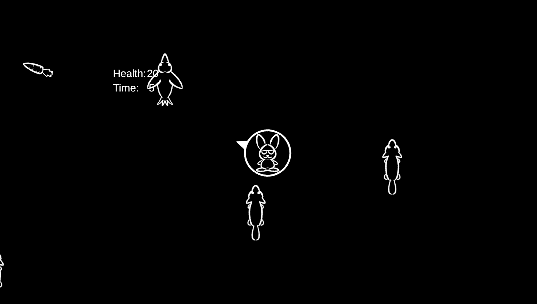 Play as a rabbit that is also a turret and shoot your carrots at the attacking hawks and foxes. This game is very unfinished.